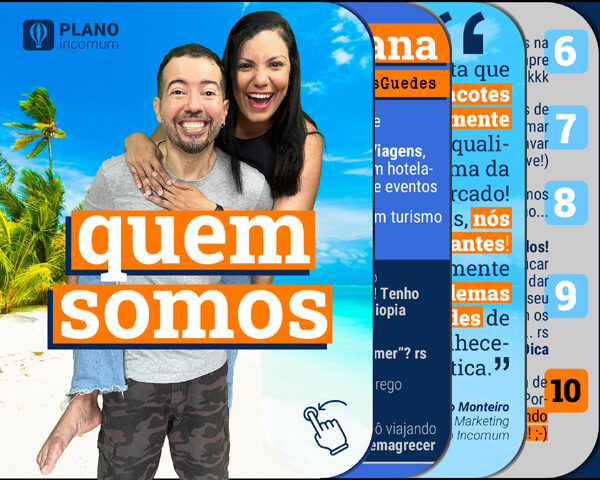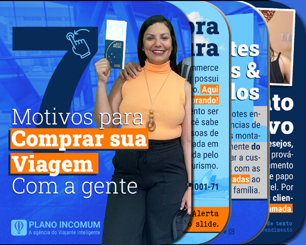 Ao comprar com a Plano Incomum, você vai contar com uma consultoria especializada, que vai te ajudar em todas as fases da viagem. Desde a escolha do destino, passando pelos detalhes logísticos, construção de roteiro, e culminando num itinerário tranquilo e seguro. Além disso, nós temos parcerias com hotéis, receptivos, operadoras, companhias aéreas etc. O que nos dá acesso a tarifas diferenciadas e produtos turísticos exclusivos.